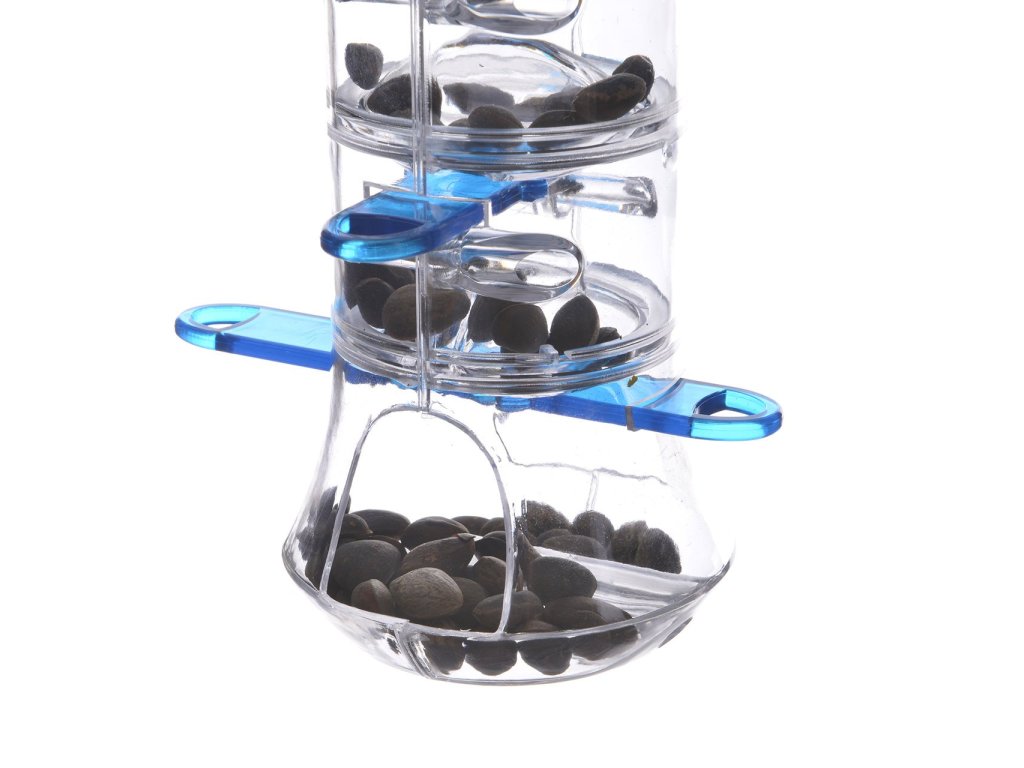 FUTTOMAT pro malé papoušky. V jejich přirozeném prostředí, papoušci hledají potravu celý den a to iv dutinách a musí někdy vynaložit námahu, aby se k ní dostali. Jelikož u nás takové možnosti nemají, inspirovali jsme se zoologickými zahradami. Ptačí parky a zoologické zahrady pro ně skrývají potraviny a pochoutky v pytlích a kbelících, které upevňují na stromy. Malé otvory vyžadují skutečnou zručnost ptáků, aby získali přístup k potravě. Tato hračka bude určitě překvapením pro Vaše malé přátele.