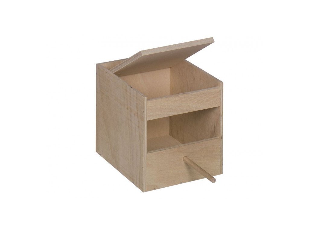 Ptáčci jsou přirozeně zvědaví, proto je dobré, pokud mají v kleci vždy nějaké podněty. Ale neméně důležité pro ně je mít i své tiché zákoutí. Tyto polouzavřené budky s bidélkem poskytují vašemu opeřenému příteli soukromý prostor, který je ideální na hnízdění.
