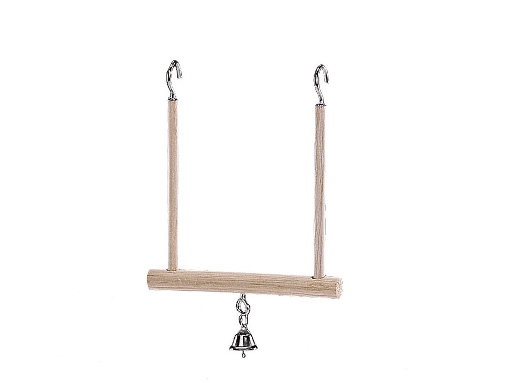 Vzrušující dřevěná houpačka se zvonkem pro malé papoušky.
