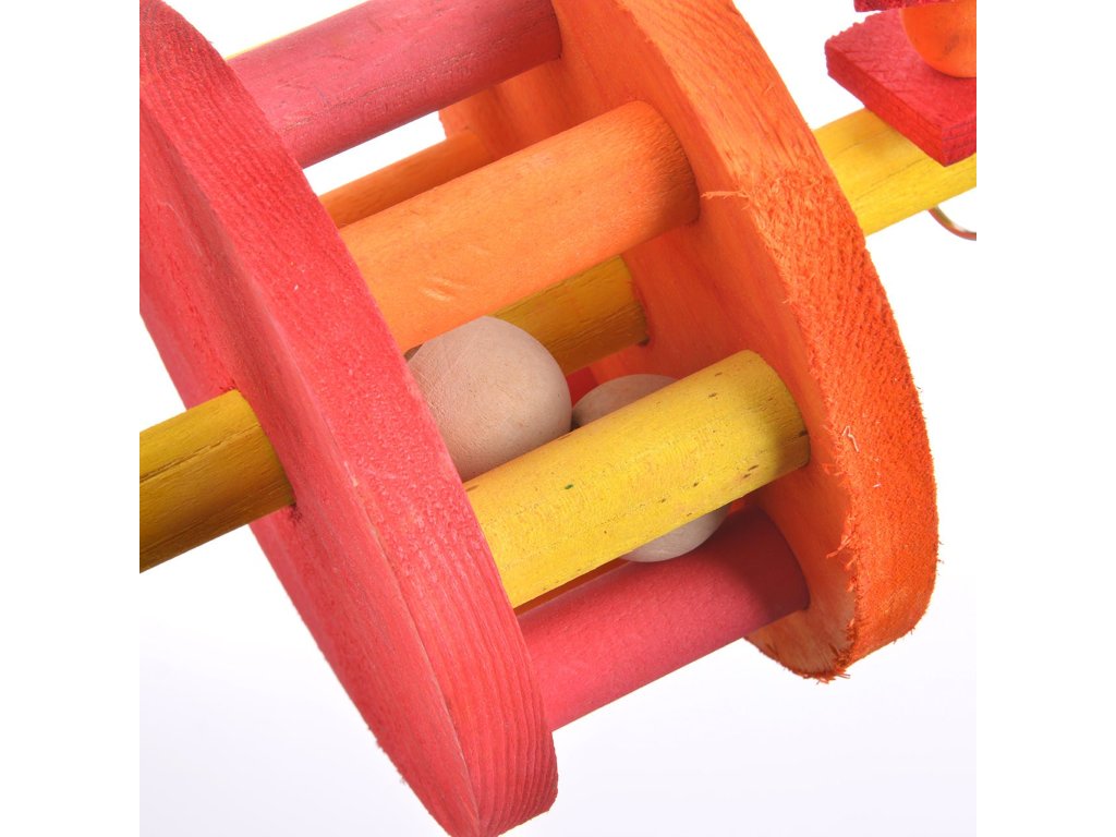 - Dřevěné koule uvnitř kola zaujmou každého papouška.</p