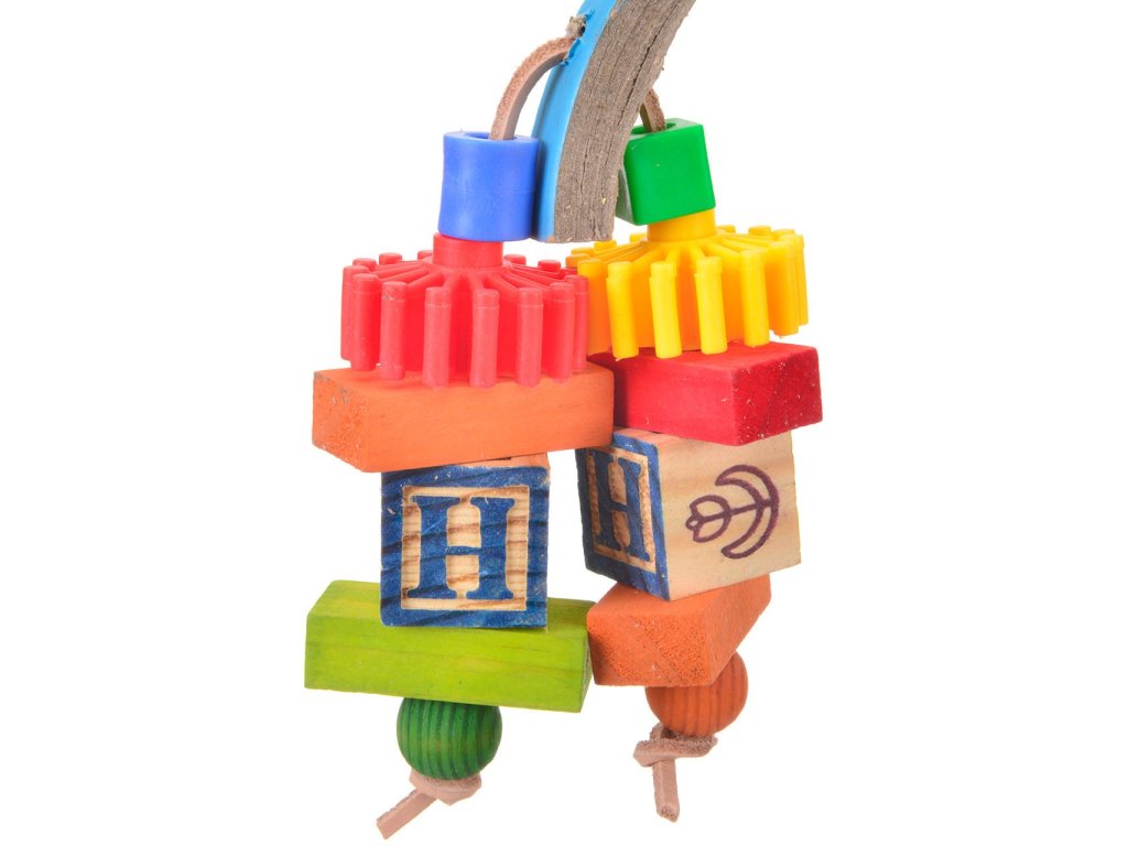 Hračka pro střední a velké papoušky Abeceda v kostce o rozměru 28 x 22cm.