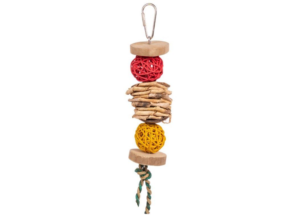 Obsahuje dva barevné ratanové míčky, které jsou ideální pro kousání a tahání.
