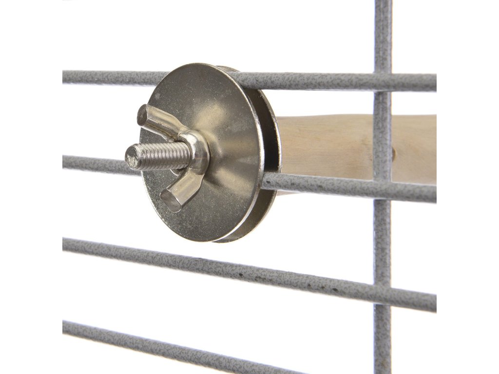 Jak se toto bidlo pro papoušky instaluje? Zcela jednoduše. Bidlo má na konci křídlovou matici a dvě podložky. Odkrouťte matici a sejměte jednu podložku. Přiložte bidlo z jedné strany mříže klece, z druhé strany založte druhou podložku a křídlovou matici zatáhněte na doraz. Bidlo tím bude stabilní.