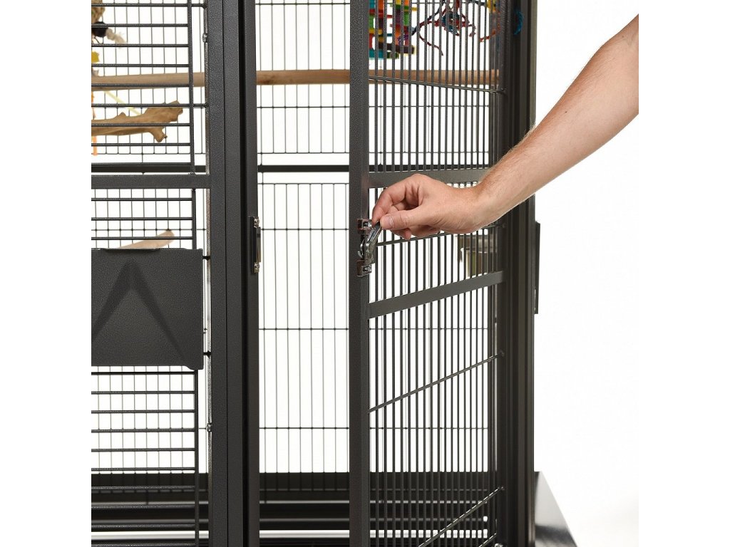 Montana Cages - nejnovější generace nejprodávanějšího modelu z řady „ Classic Line“. Nový zámek dveří, jakož i nový systém zamykání dvířek krmítek a super robustní kovová kolečka dodávají této kleci nový rozměr. Vrch klece s hřištěm má nyní dvě patra, a tím nabízí našim opeřencem ještě více možností na hraní.