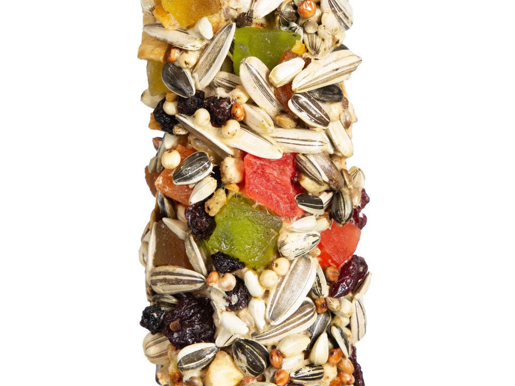 Extra velké tyčinky pro velké druhy papoušků na maškrecení MAXI XXL Ovoce 450g.