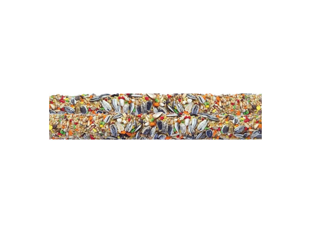 Doplňkové krmivo pro andulky. SLOŽENÍ: Semena, Zrna, Chléb, Vedlejší vedlejší produkty rostlinného původu, Ovoce (banán 1%, Pomeranče 0, 3%, Hrozny 0,3%, jablka 0,2%, bobule 0,2%), Minerály, Vlašské ořechy (0,7%), Med, Cukry
